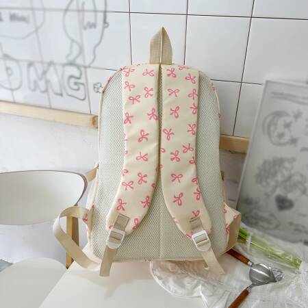 حقيبة ظهر نسائية عصرية بطباعة فيونكة كورية خفيفة الوزن وحقيبة مدرسية بسيطة للطلاب مجموعة حقائب نسائية مكونة من ثلاث قطع
