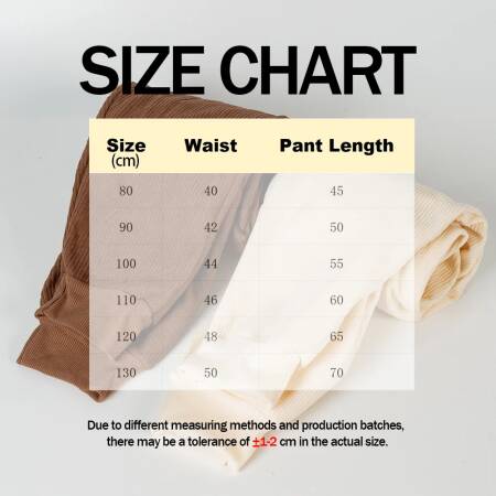 ر.س 35,73PS: Size is enough, pls do not choose large. Size(cm) Length Waist Hip Suggest height 80 50 40 88 75-85cm 90 55 40 91 85-95cm 100 60 42 94 95-105cm 110 65 44 97 105-115cm 120 70 46 100 115-125cm 130 75 48 103 125-135cm