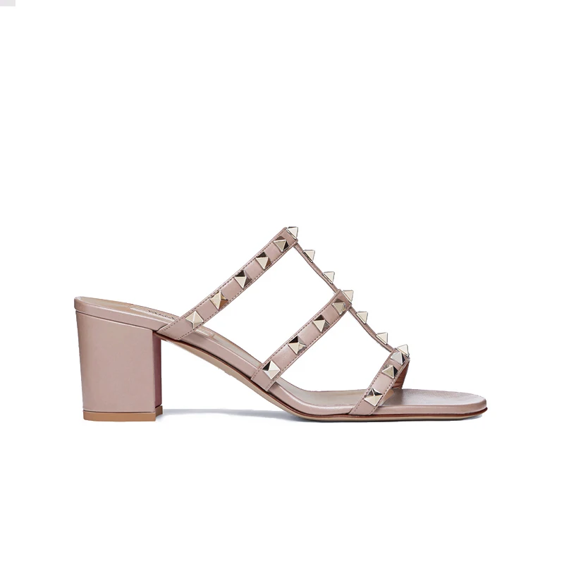 أحذية نسائية فاخرة أحذية المصارع امرأة 2024 الاتجاه للنساء الصنادل شبشب صيفي كعب مكتنز المسامير الجلدية عالية الكعب