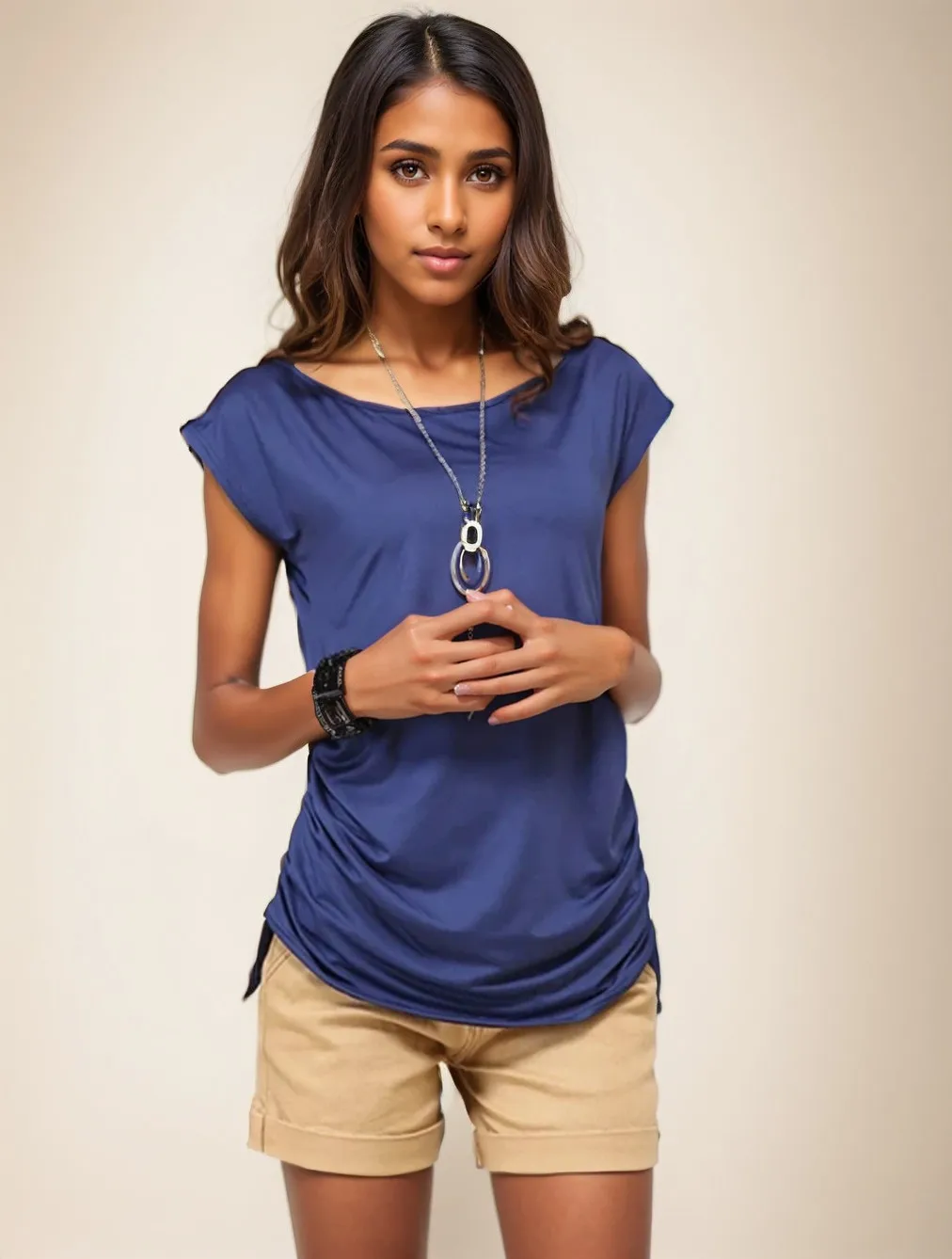 BBWM جولة الرقبة مرونة قصيرة الأكمام أزياء المرأة تي شيرت فضفاض الرجعية الوردي ضئيلة الصيف الإناث أعلى