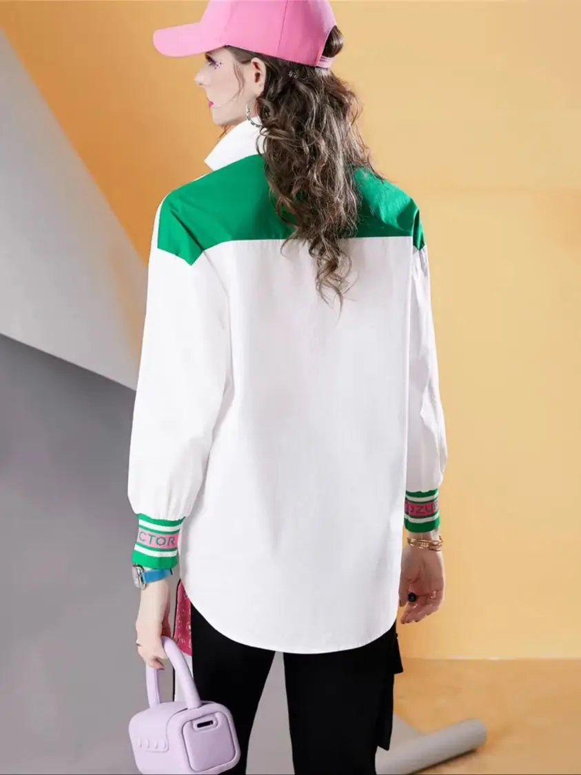 3. ظهر محجوب بالألوان:يعرض الجزء الخلفي من القميص خياطة جريئة ذات ألوان محجوبة، مما يعزز الطراز العصري.