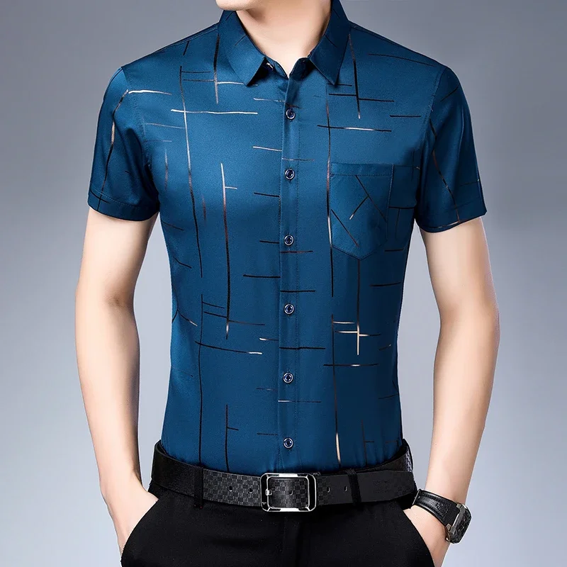 قميص رجال الأعمال الجديد غير الرسمي بأكمام قصيرة بدون قميص مقاوم للحديد والتجاعيد