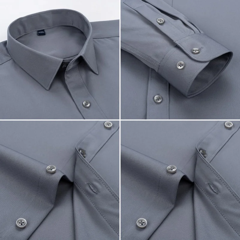 قميص رجال الأعمال بلون واحد ، الموضة الرسمية ، رقيقة ، الكلاسيكية ، الأساسية ، عارضة ، ضئيلة ، أبيض ، طويلة الأكمام ، الاجتماعية ، ملابس رجالية ، جديدة