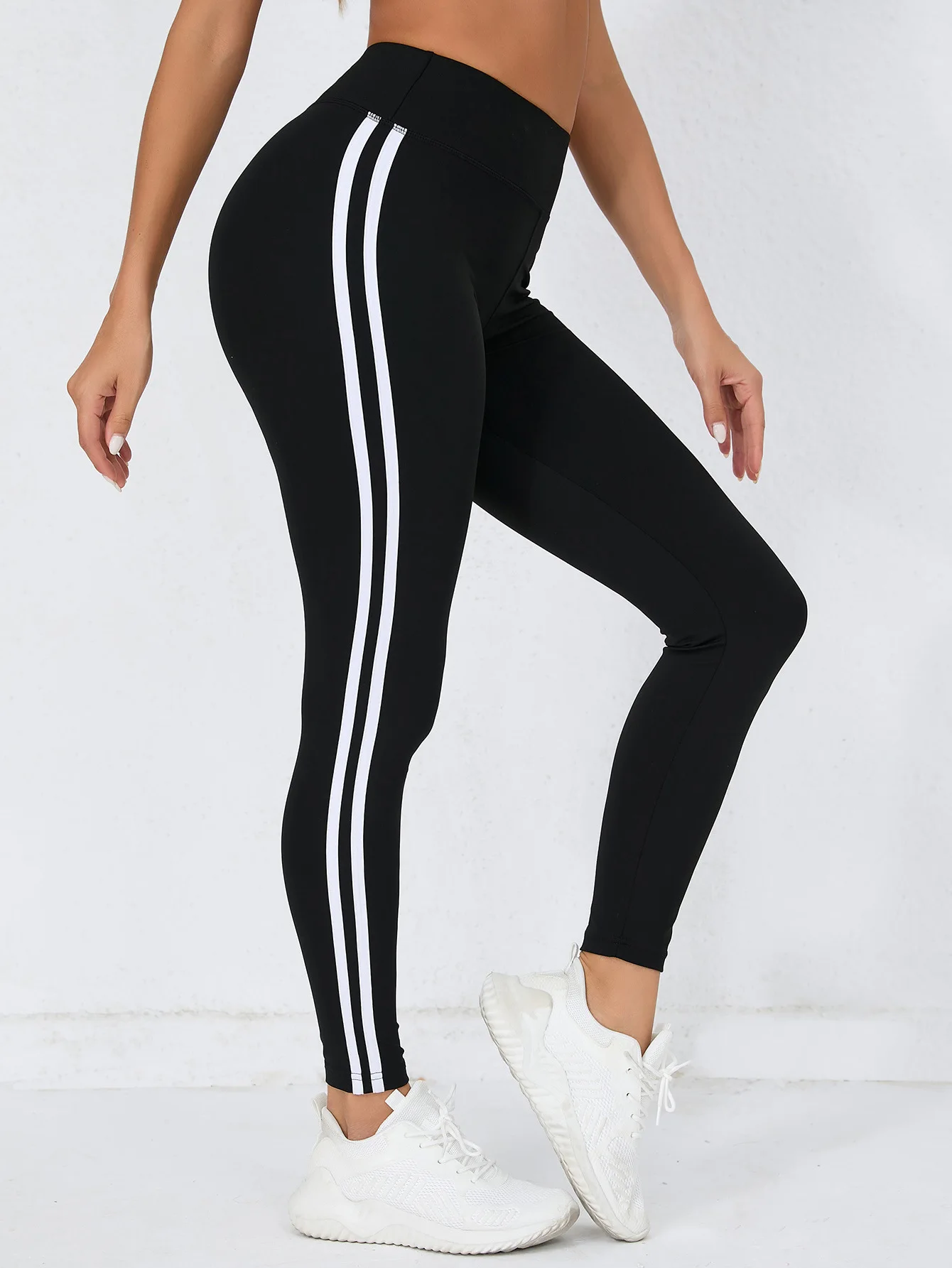 ليغنغز فائق النعومة مع مخطط أبيض للنساء ، خصر مرتفع ، تمدد ، تمرين ، جري ، بنطلون ضيق