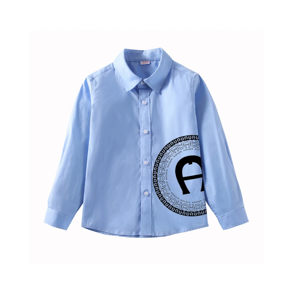 قميص أزرق للأولاد على طراز الربيع والخريف مع طباعة حروف، طية صدر السترة للأولاد، ملابس قميص كاجوال عصرية بأكمام طويلة
