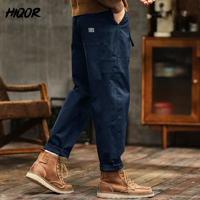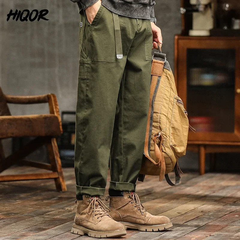 HIQOR الرجال السراويل فضفاضة الملف الشخصي الأمريكية خمر السراويل للرجال عالية الخصر الجيش الأخضر سراويل تقليدية للرجال البضائع السراويل الذكور