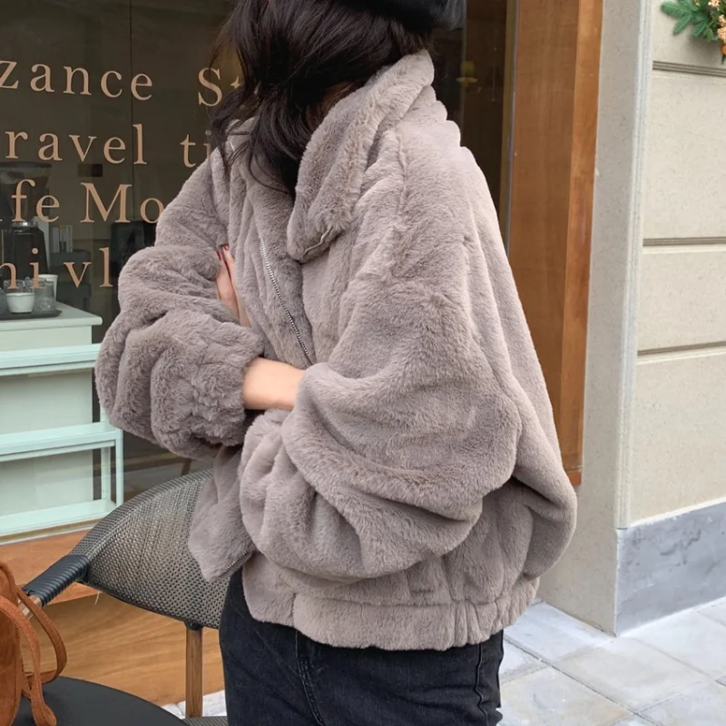 المرأة الخريف الشتاء رشاقته معطف دافئ الوقوف طوق فضفاض الفراء أفخم جاكيت زيبرا لينة مريحة عادية بسيطة الصلبة ملابس خارجية
