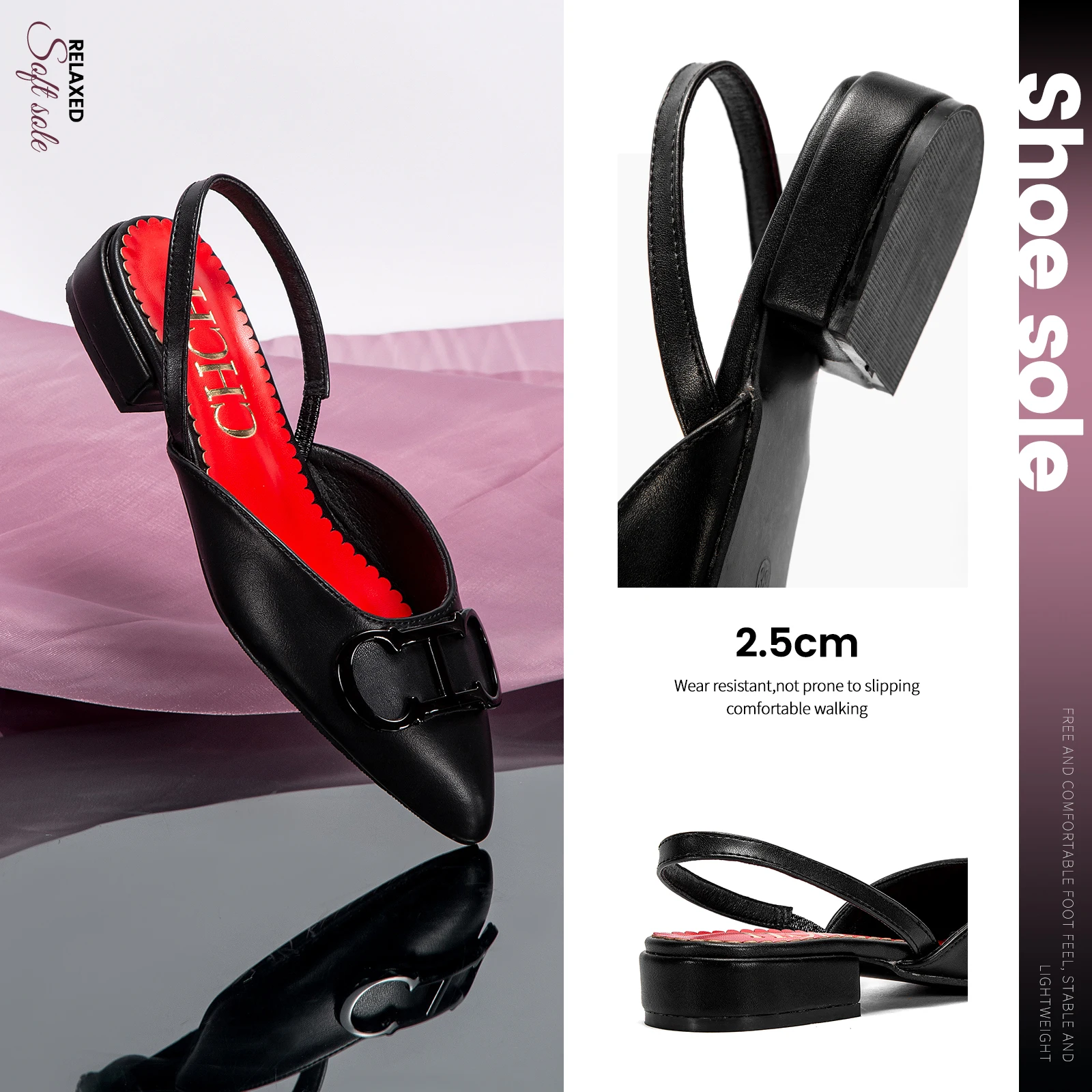 صنادل نسائية CHCH 2024 حذاء نسائي أسود جديد ذو قاع مسطح بسيط أسود للأعمال