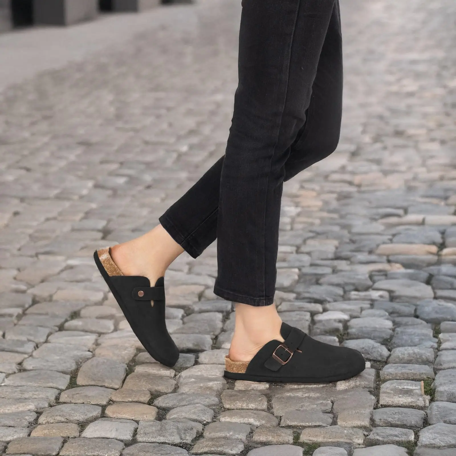 Kidmi الصيف قباقيب للنساء الرجال جلد الغزال قباقيب قابل للتعديل مشبك الانزلاق على الفلين مسند القدمين البغال قباقيب مضادة للانزلاق وحيد النعال للجنسين