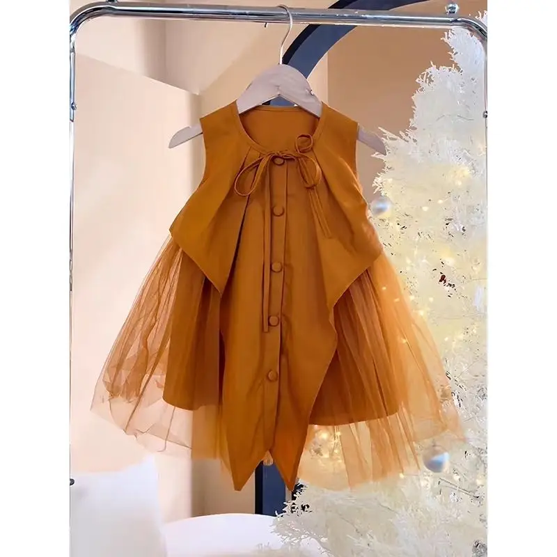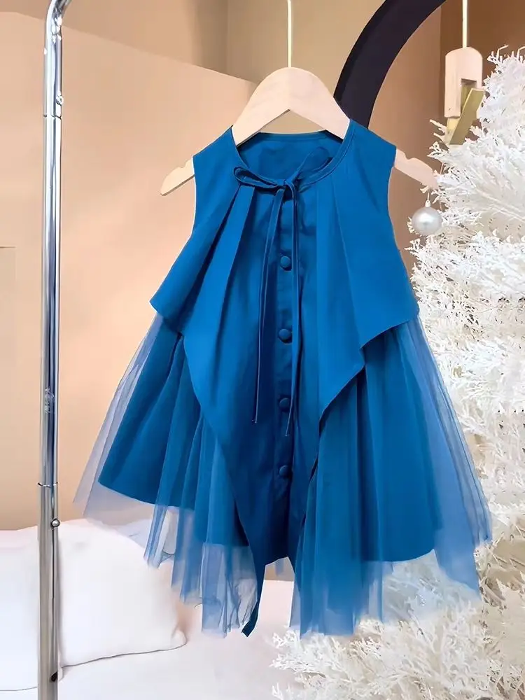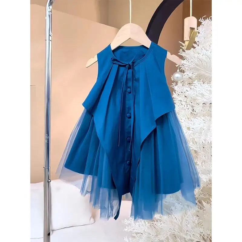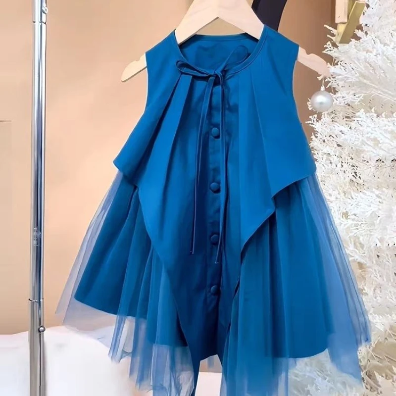 فساتين صيفية للأطفال غير منتظمة بدون أكمام للفتيات فستان الأميرة الشبكي المرقع للأطفال ملابس الأطفال 4 5 6 7 8 9