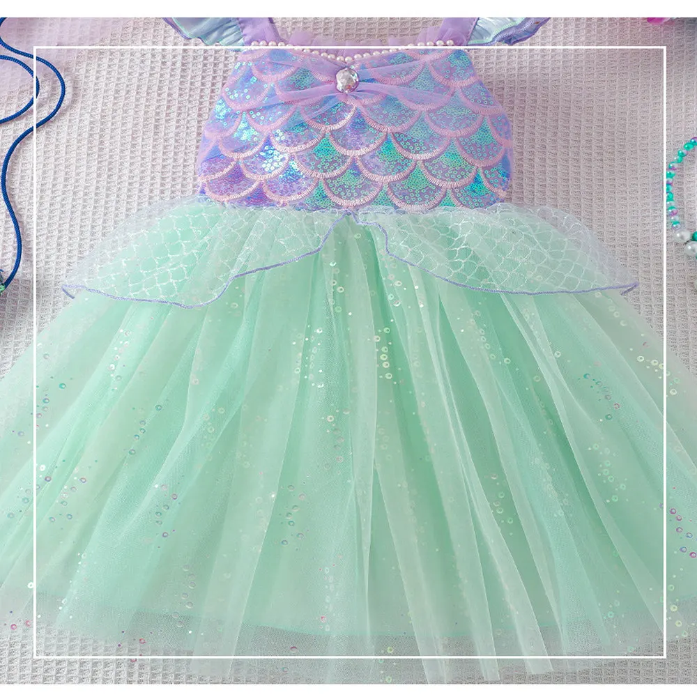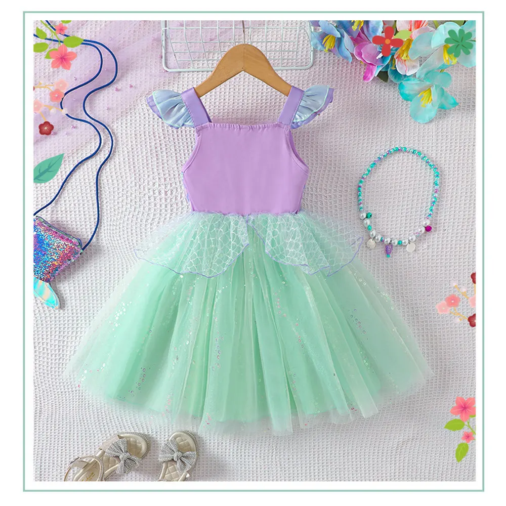 أداء الترتر زي فتاة فساتين الأميرة حبال شبكة تنورة عيد ميلاد فتاة فستان حورية البحر تحت عنوان ملابس فتاة الحفلات