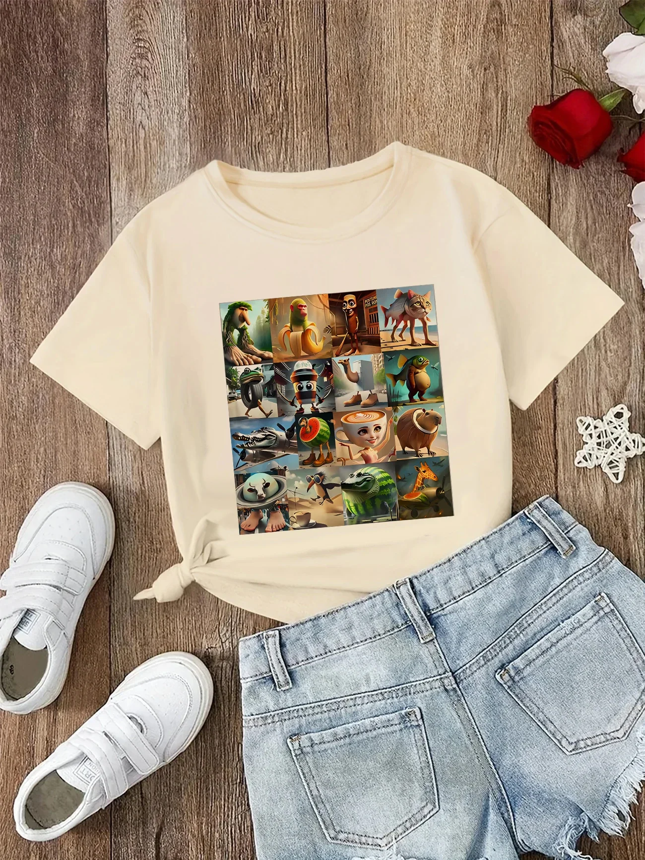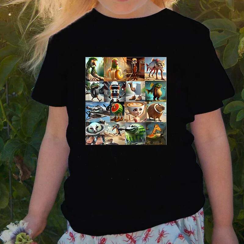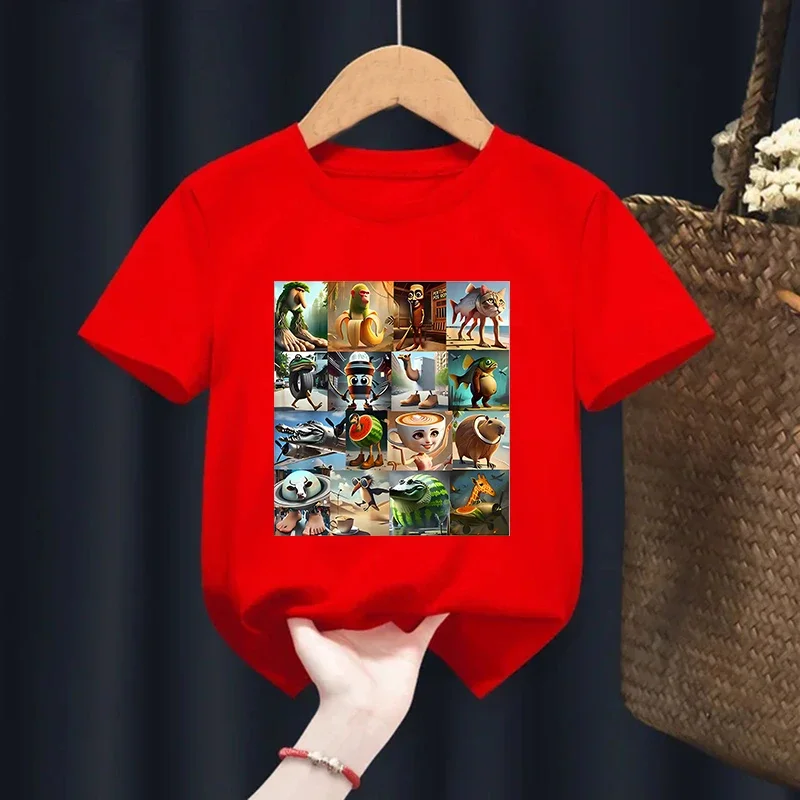 للجنسين تي شيرت مانج كيد الإيطالية Brainrot تي شيرت الاطفال الكرتون أنيمي طباعة الملابس جولة الرقبة الأساسية الفتيان الفتيات بلايز القمصان