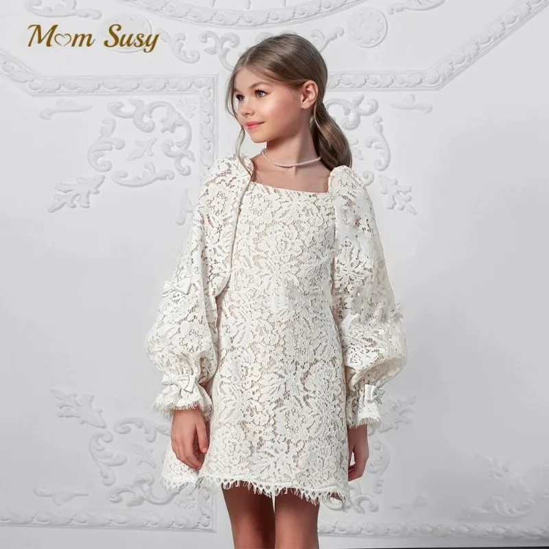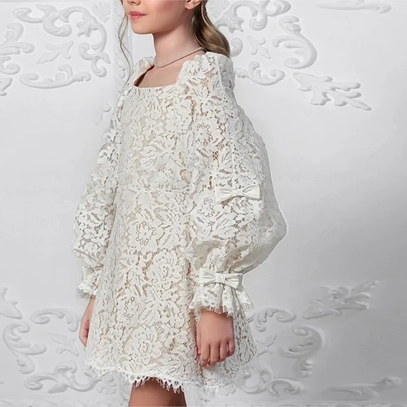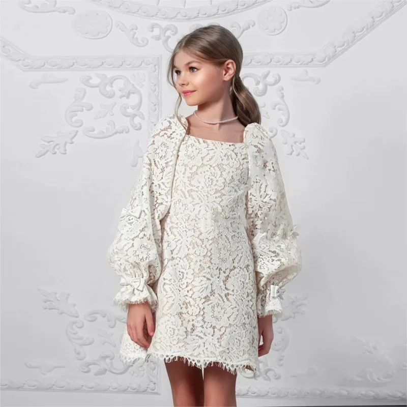 طفلة الأميرة فستان الدانتيل الرضع طفل رضيع خمر فيستدو طويلة الأكمام حفل زفاف مسابقة عيد ميلاد ملابس الطفل 1-12Y