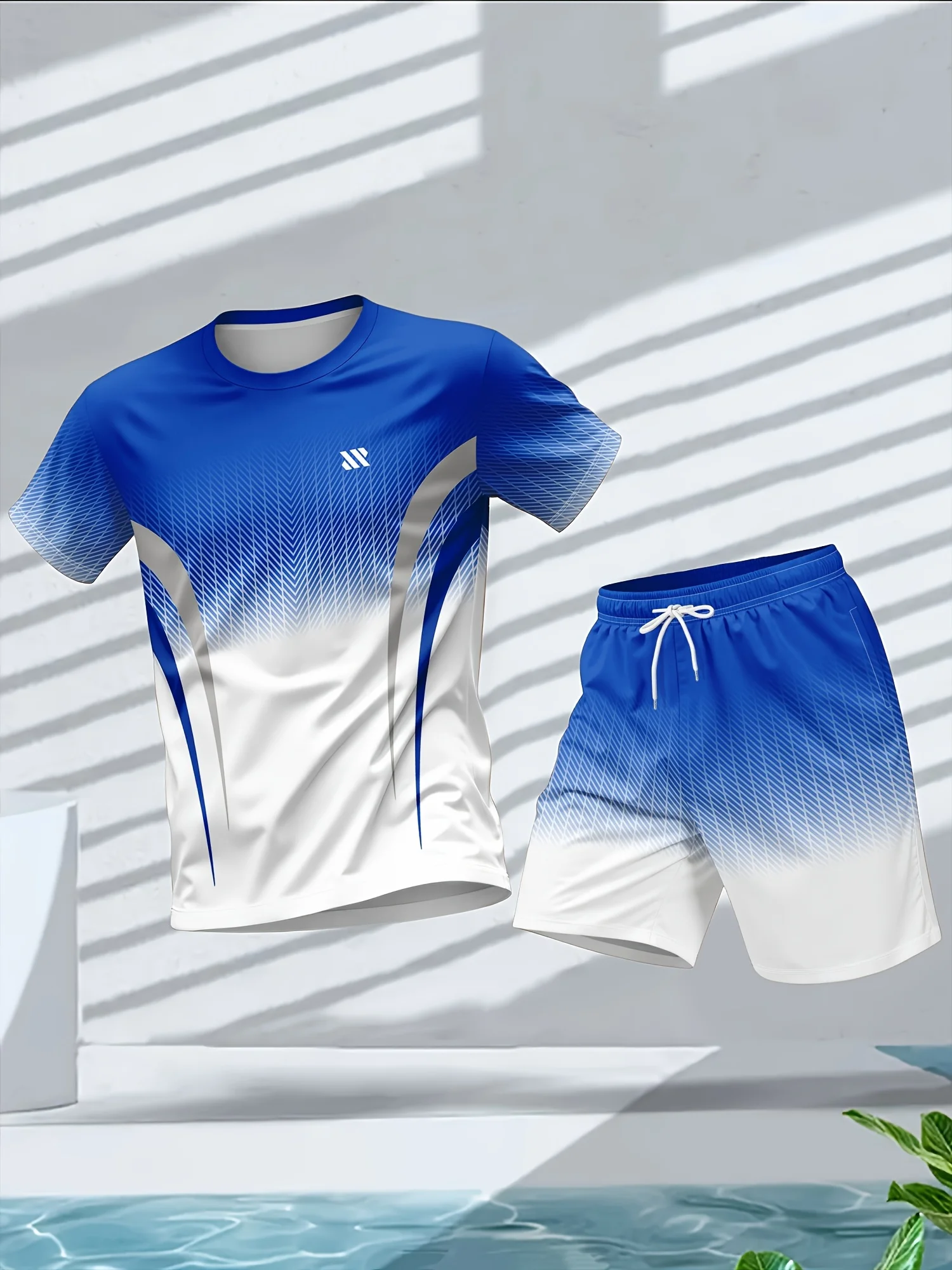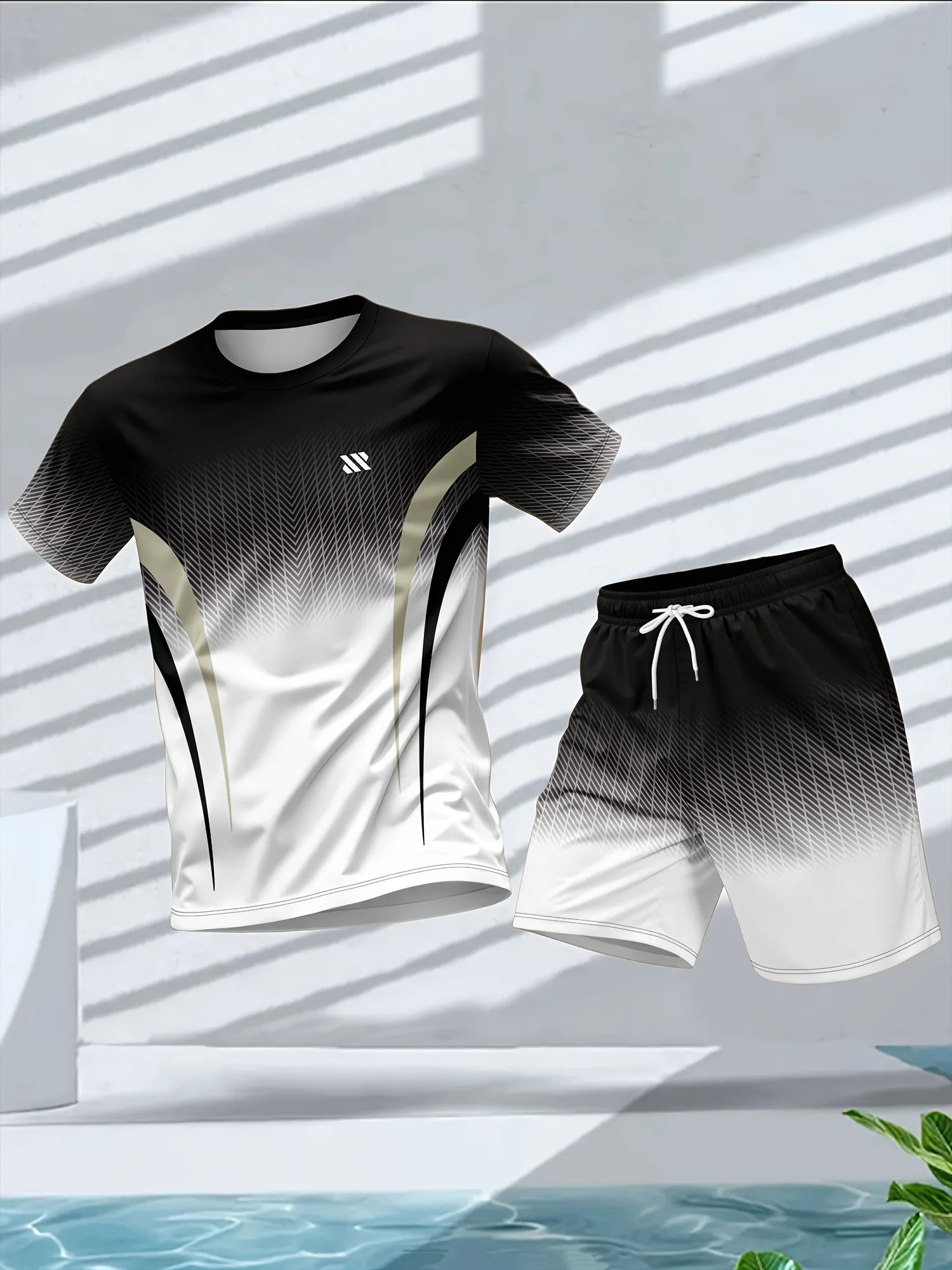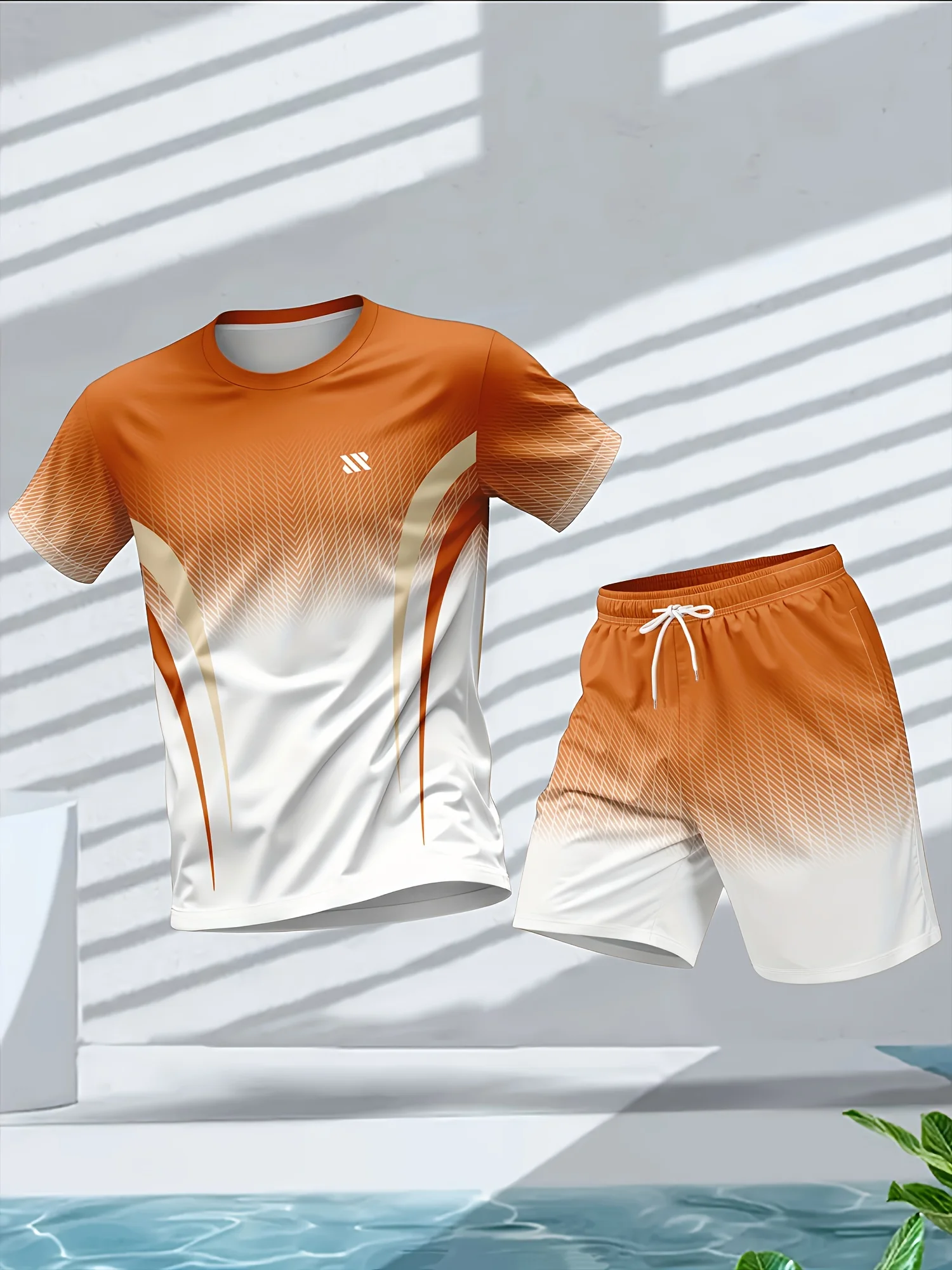 الرجال الصيف أزياء شخصية اللون المطبوعة مريحة تنفس جولة الرقبة تي شيرت السراويل مجموعة في الهواء الطلق ملابس رياضية كاجوال