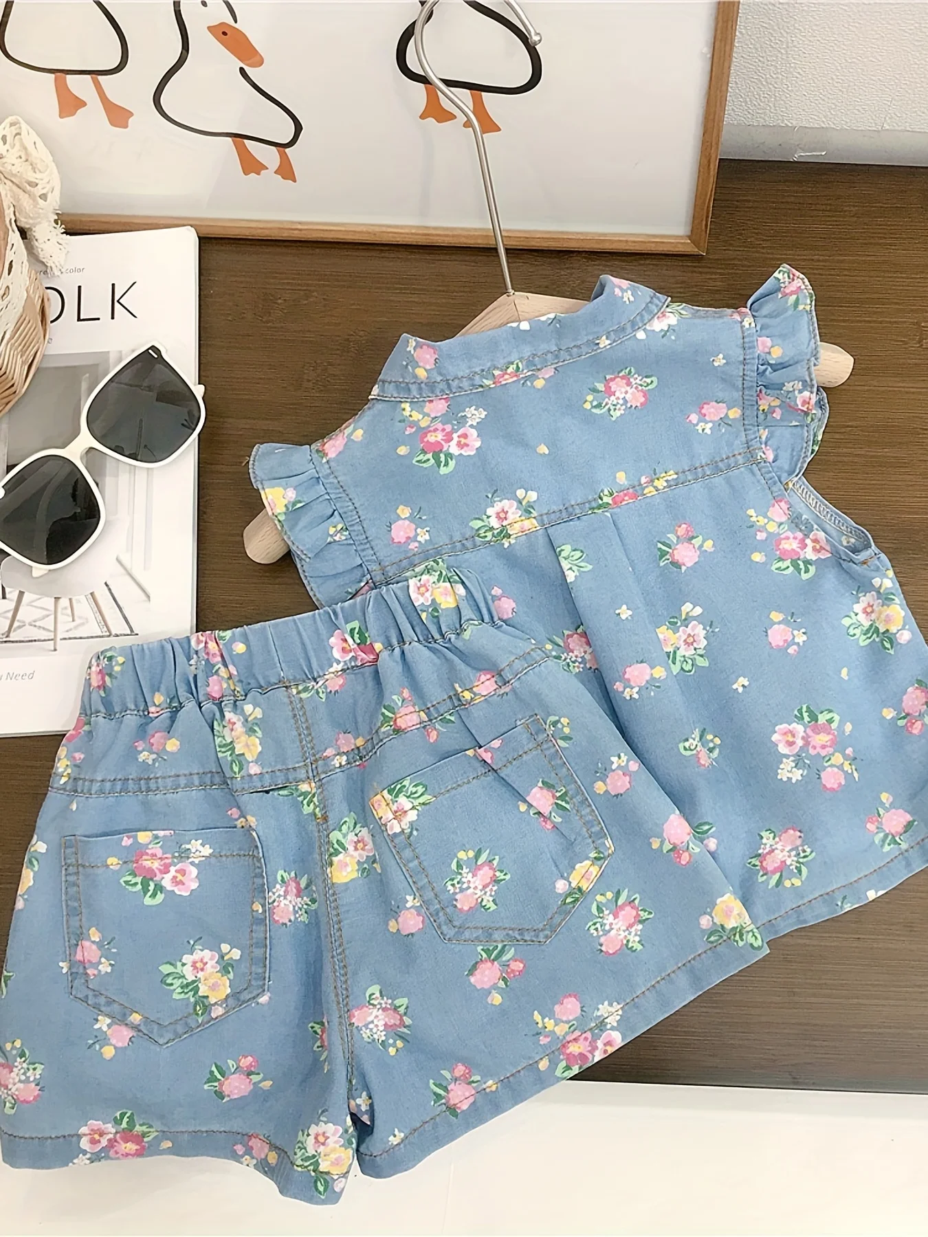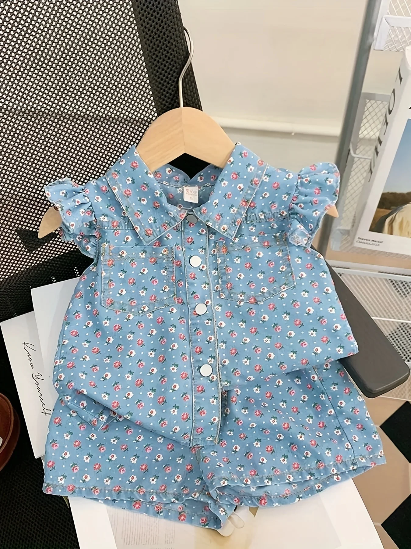 2025 صيف جديد النمط الأجنبي قسم رقيقة يطير كم الأزهار طباعة قصيرة الأكمام مجموعة تي شيرتات قصيرة للأطفال ، طفلة الصيف قطعتين دعوى