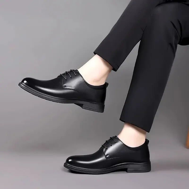 أحذية زفاف غير رسمية من الجلد الناعم للرجال نمط جديد للأعمال الرسمية قابلة للتنفس للخريف النسخة الكورية البريطانية بمقدمة مدببة للعريس S