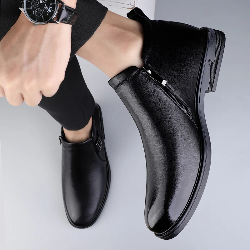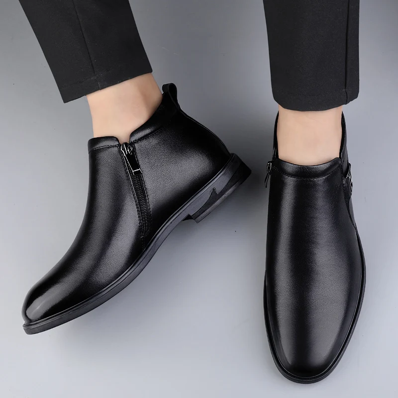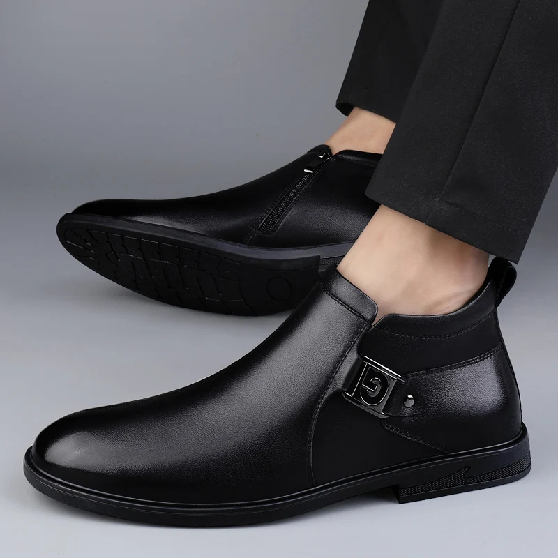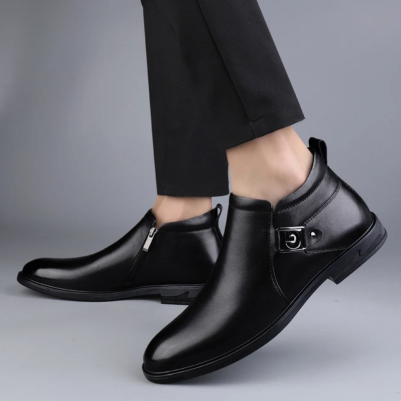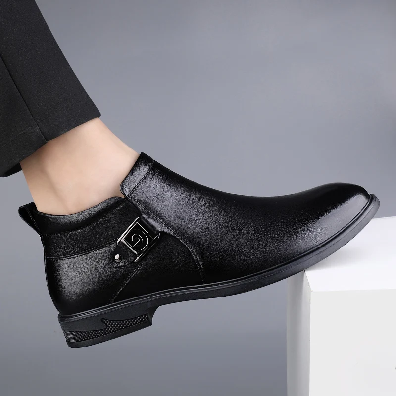 أعلى جودة بوط من الجلد الطبيعي الرجال أحذية الشتاء أحذية تشيلسي الرسمية مع فستان من الجلد الفراء حذاء رسمي الرجال أحذية الكاحل