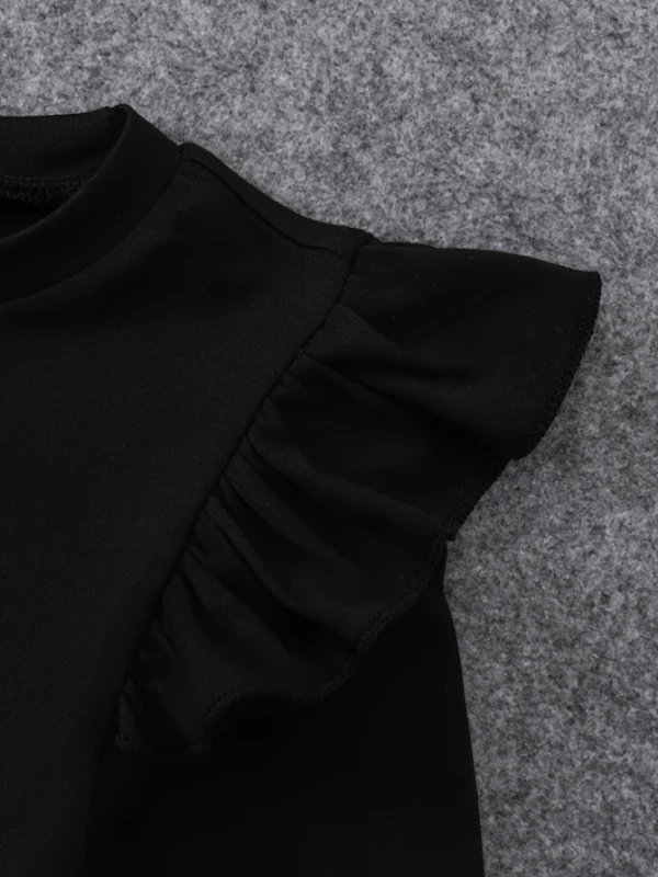 فستان كاجوال للفتيات الصغيرات للربيع والخريف برقبة دائرية وأكمام طويلة وطباعة زهور من التول للفتيات الصغيرات