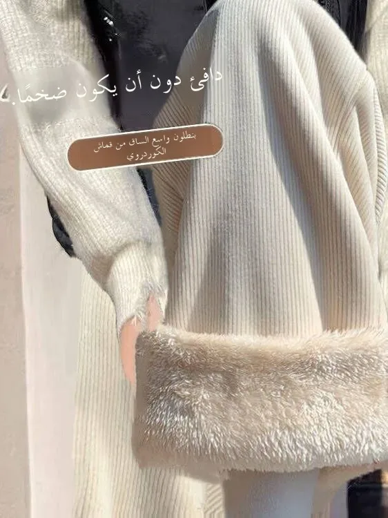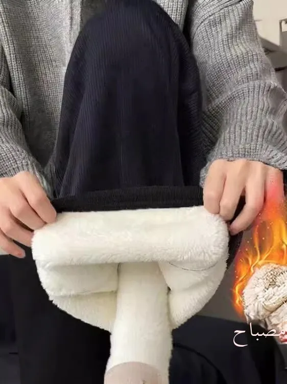 مصنوعة من مخمل لحم الضأن، توفر هذه السراويل ملمسًا فاخرًا ودفء استثنائي، مثالية للأشهر الباردة.