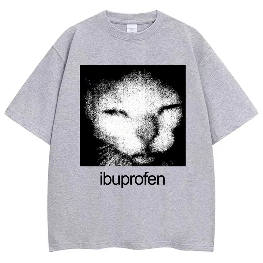 2026 خمر مضحك Ibuprofen القط ميمي الجرافيك تي شيرت المرأة الفكاهة موضة تي شيرت المتضخم ملابس الشارع الشهير تي شيرت Y2K