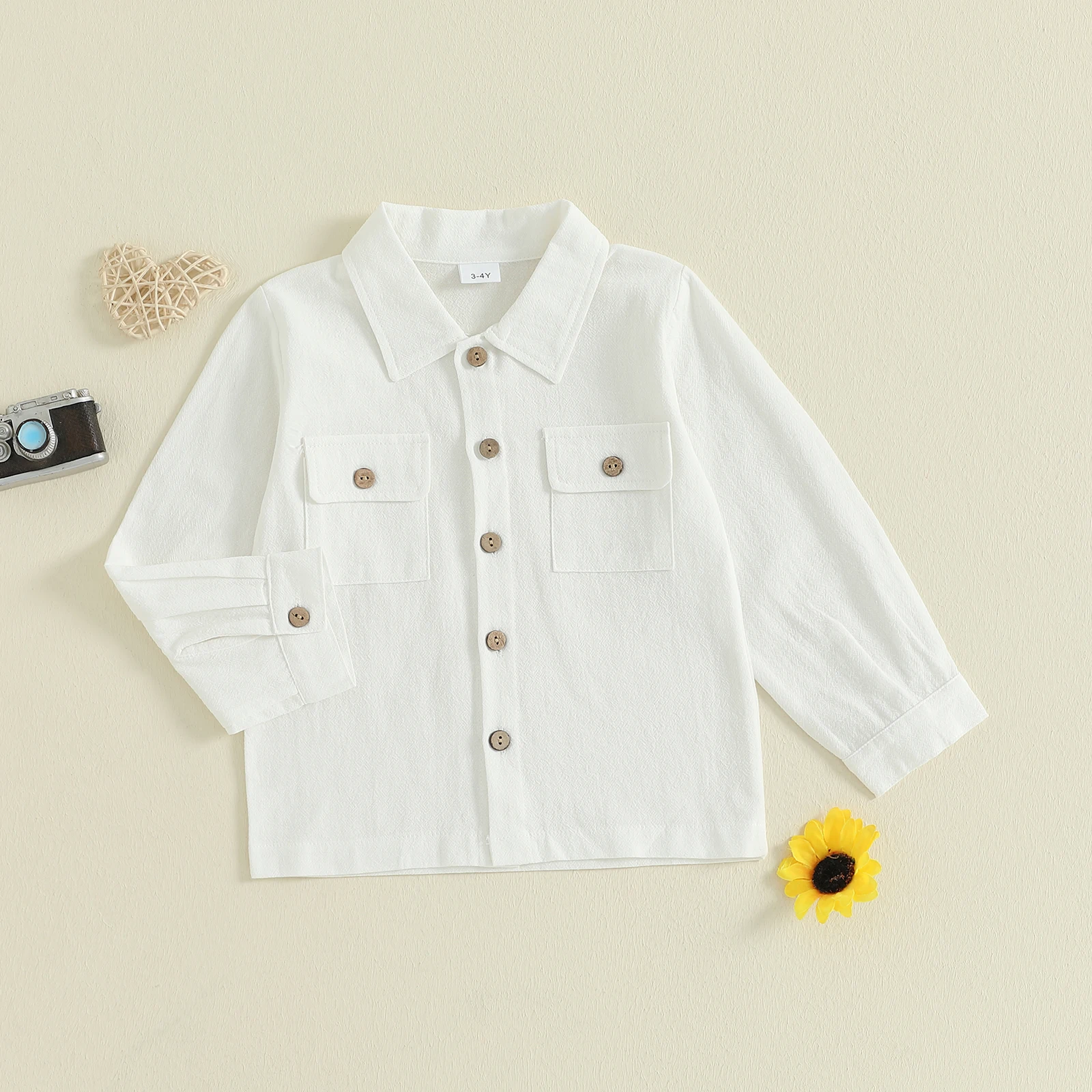 قمصان الخريف للأطفال الأولاد بأكمام طويلة بلون سادة بأزرار سفلية، قمصان الخريف للأطفال الصغار