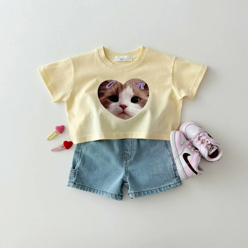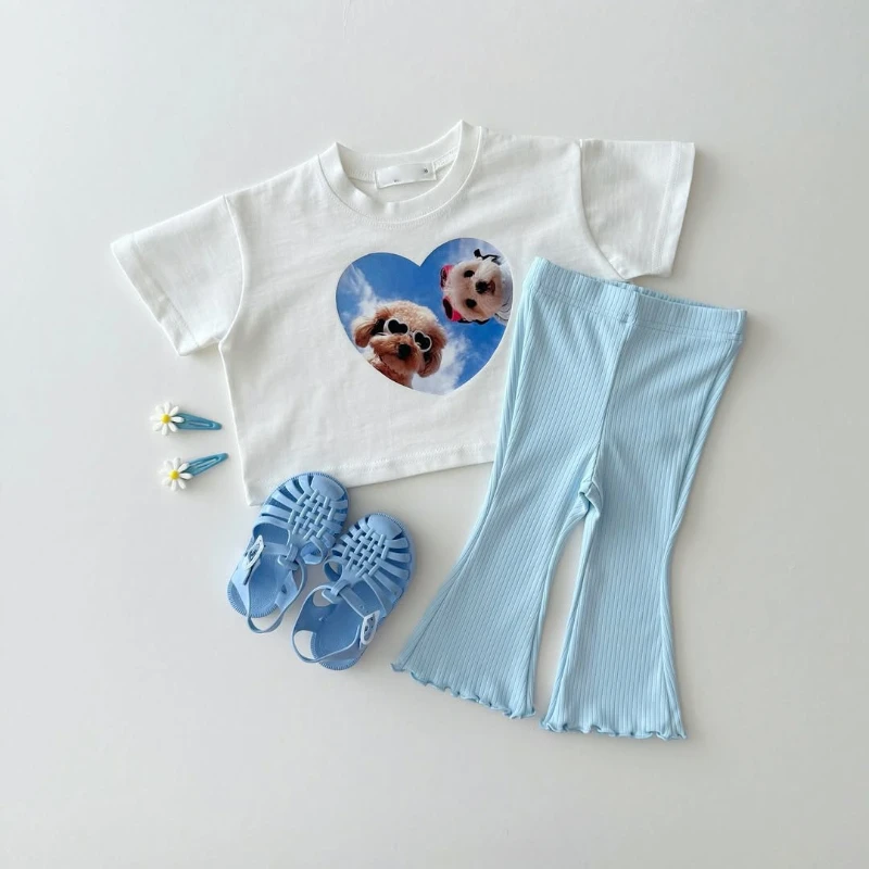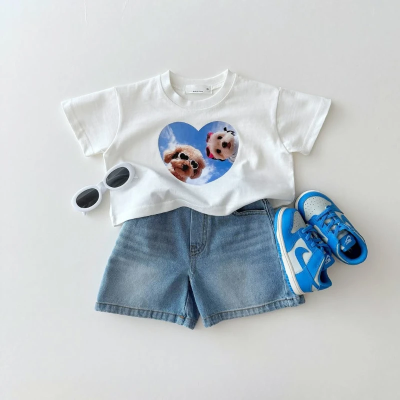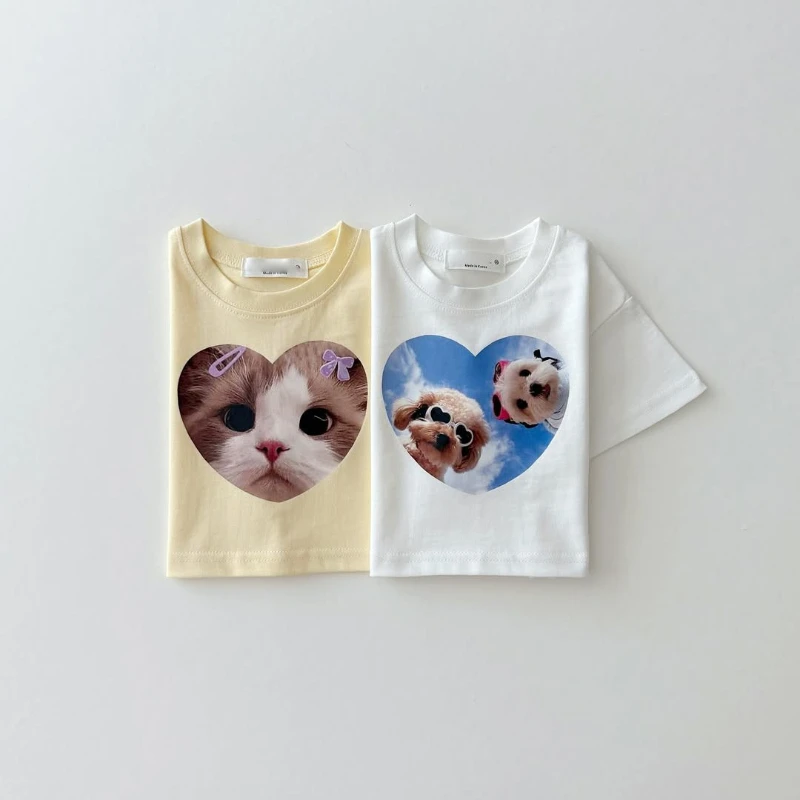 الصيف في سن المراهقة القطن تي شيرت الكرتون الحب الكلب طباعة ملابس الاطفال أزياء تي شيرت طفل الفتيان الفتيات لطيف قصيرة الأكمام ملابس أطفال