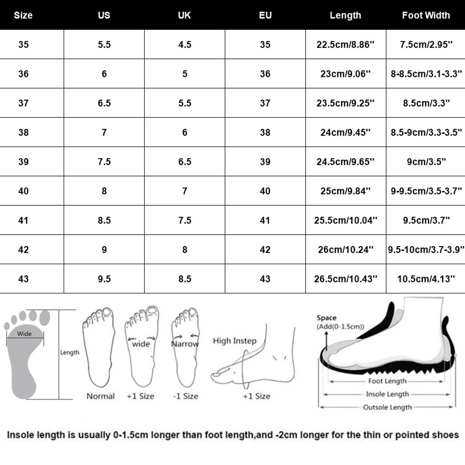 | المقاس | الولايات المتحدة | المملكة المتحدة | الاتحاد الأوروبي | الطول | عرض القدم |