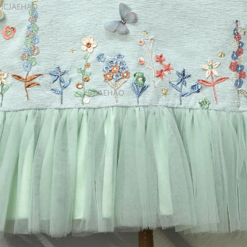 فستان أميرة أنيق للبنات بتصميم زهور ثلاثية الأبعاد وفيونكة لعام 2026، زي رسمي للأطفال، فستان حفلات أعياد الميلاد، ملابس أطفال للمناسبات الخاصة